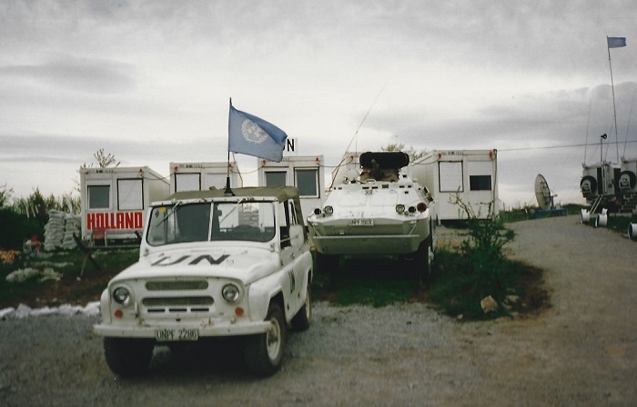 Onze Nederlandse groep bestond uit acht man. Als verbindingsgroep waren wij verantwoordelijk voor alle communicatie tussen het Tsjechische bataljon en de overige bataljons. Het voordeel voor ons was voornamelijk dat bij alle overige bataljons ook Nederlanders de verbindingen verzorgden. Hierdoor liep alles gesmeerd. Binnen de diverse sectoren waarin Joegoslavië door de VN was verdeeld, waren verschillende landen met hun bataljon verantwoordelijk voor de veiligheid binnen een bepaalde regio. Zo ook het Tsjechische bataljon waar wij bij waren geplaatst. Op het bungalowpark liepen dan ook vooral Tsjechen rond en een enkele Schot en Ier. Deze laatste twee waren burgers die als een soort klusjesmannen overal binnen het bataljon werden ingezet. Het waren ‘gewone’ burgers die door de VN waren ingehuurd. Dit bleek wel vaker te gebeuren. In mijn ogen moest je wel stapelgek zijn om daar aan te beginnen, want je had totaal geen bescherming op wat voor manier dan ook. Ze mochten geen militaire kleding dragen en al helemaal geen wapens bezitten.