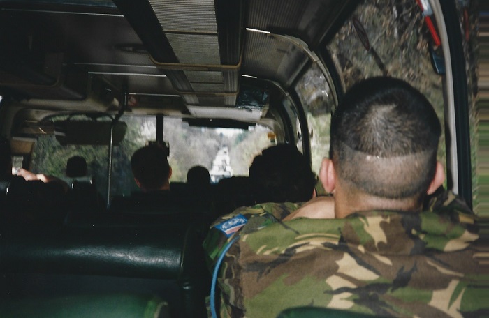 De laatste ochtend op de kazerne in Ossendrecht verliep volgens een strak schema. Eerst ontbijten, daarna een laatste kamerinspectie en met het peloton op appèl. De touringcars die voor ons klaarstonden, leken te wachten op een klas die op schoolreis zou gaan. In de bus zelf hing ook een stemming die erg veel weg had van de tijd dat we met zijn allen naar de Efteling gingen. Aan de ene kant waren we erg opgewonden en ergens toch ook wel nerveus. Ik had zelf een soort van gelaten stemming over me heen. Buiten was het een typische Hollandse ochtend. Over de weilanden hing een vochtige sluier. De zon probeerde zich te laten zien en voerde een gevecht met de wolken. Zo trok het landschap voorlopig voor de laatste keer aan me voorbij. Ik nam het niet echt in me op. Ergens zat ik in gedachten meer de afgelopen paar maanden nog eens te herleven. Er was veel veranderd.